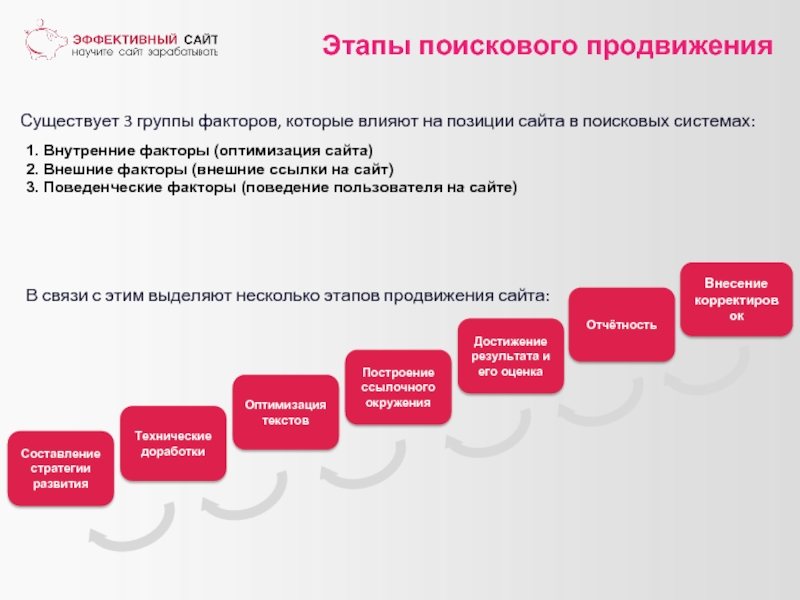 В связи с этим выделяют несколько этапов продвижения сайта: