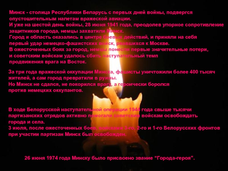 Но Минск не сдался, не покорился врагу, а героически боролся