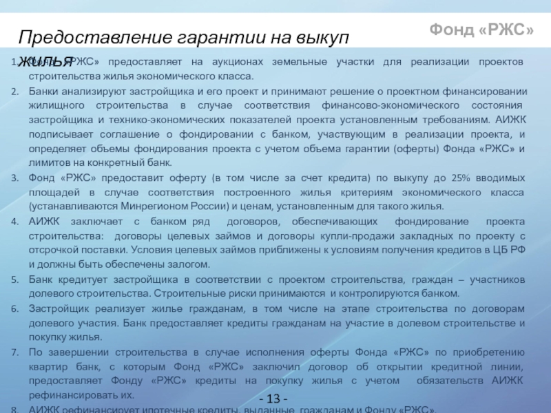 3) Фонд «РЖС» предоставляет оферту на покупку согласованного объема жилья по установленной цене