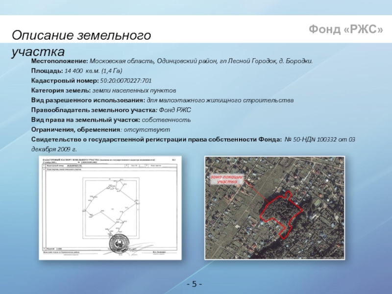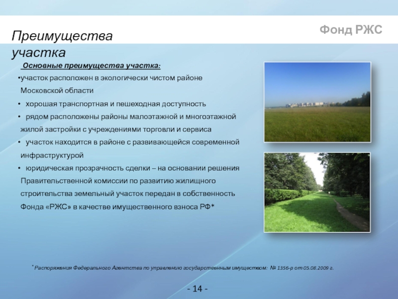 юридическая прозрачность сделки – на основании решения Правительственной комиссии по развитию жилищного строительства земельный участок передан в собственность Фонда «РЖС» в качестве имущественного взноса РФ*
