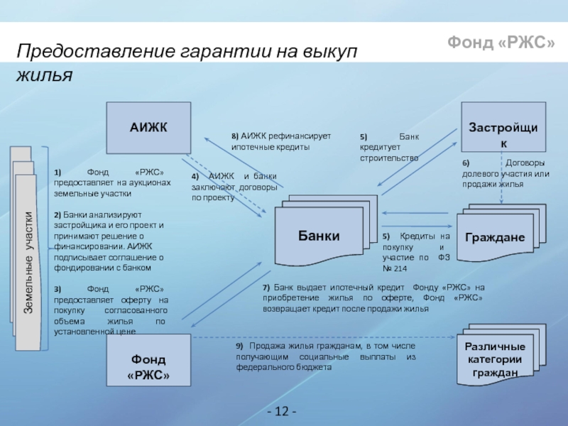 7) Банк выдает ипотечный кредит Фонду «РЖС» на приобретение жилья по оферте, Фонд «РЖС» возвращает кредит после продажи жилья