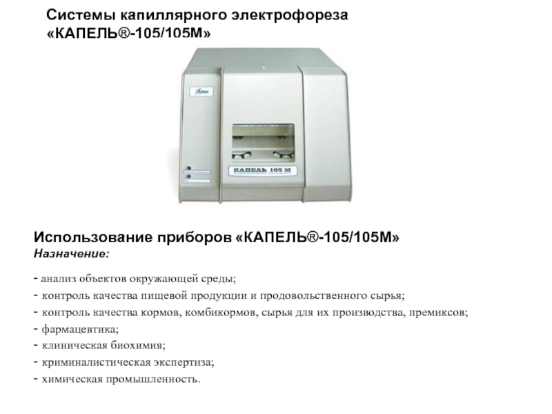 Слайд 16Системы капиллярного электрофореза «КАПЕЛЬ®-105/105M»