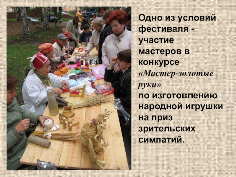 по изготовлению народной игрушки на приз зрительских симпатий;