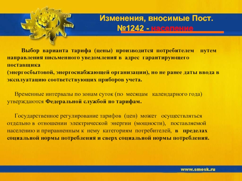 Выбор ценовой категории осуществляется потребителем самостоятельно посредством уведомления гарантирующего поставщика в течение 1 месяца с даты принятия решения об установлении тарифов на услуги по передаче электрической энергии в соответствующем субъекте Российской Федерации.