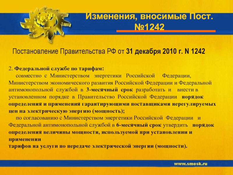 антимонопольной службой в 3-месячный срок разработать и внести в