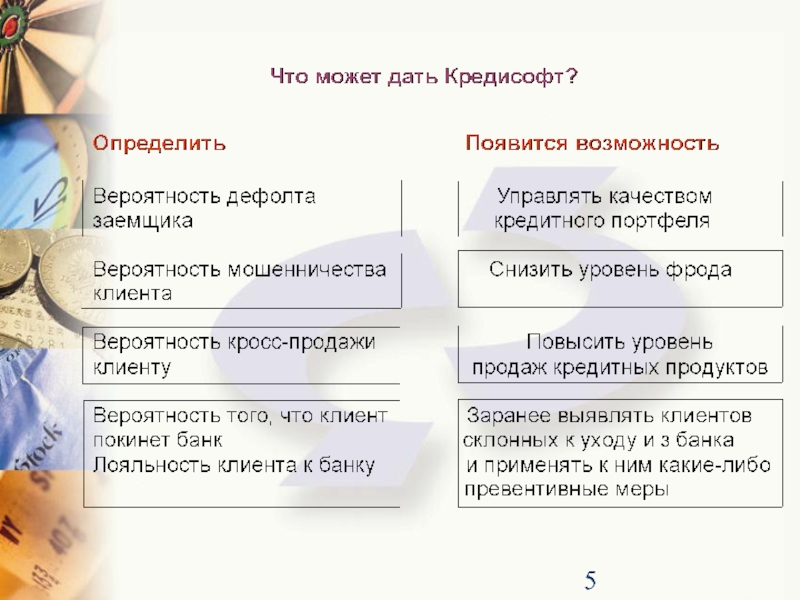 Цель применения Кредисофт – повышение доходности операций кредитования предприятий путем: