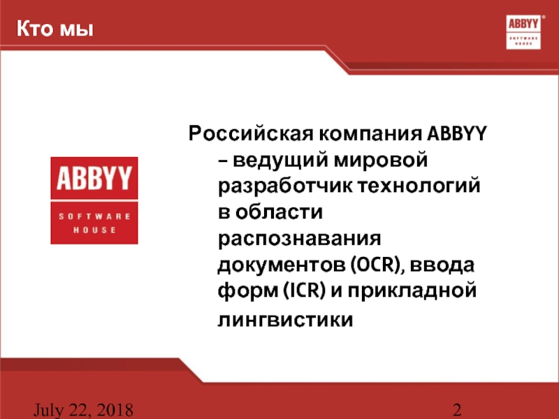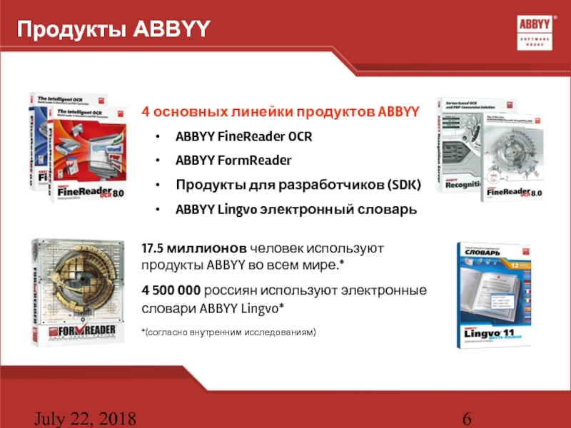 Эти технологии используются для создания всех программных продуктов ABBYY