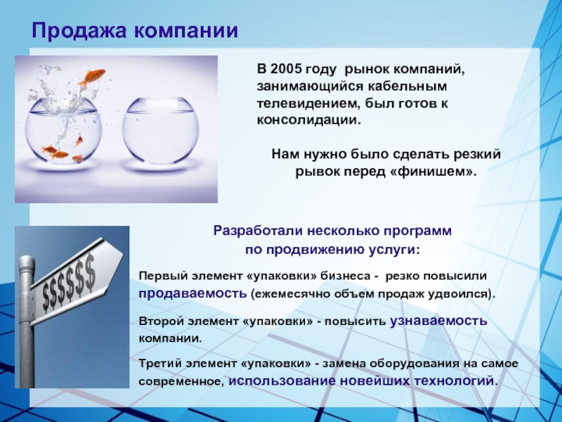 Первый элемент «упаковки» бизнеса - резко повысили продаваемость (ежемесячно объем продаж удвоился).