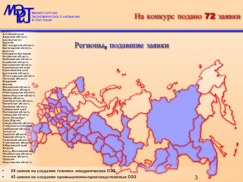 Регионы, подавшие заявки