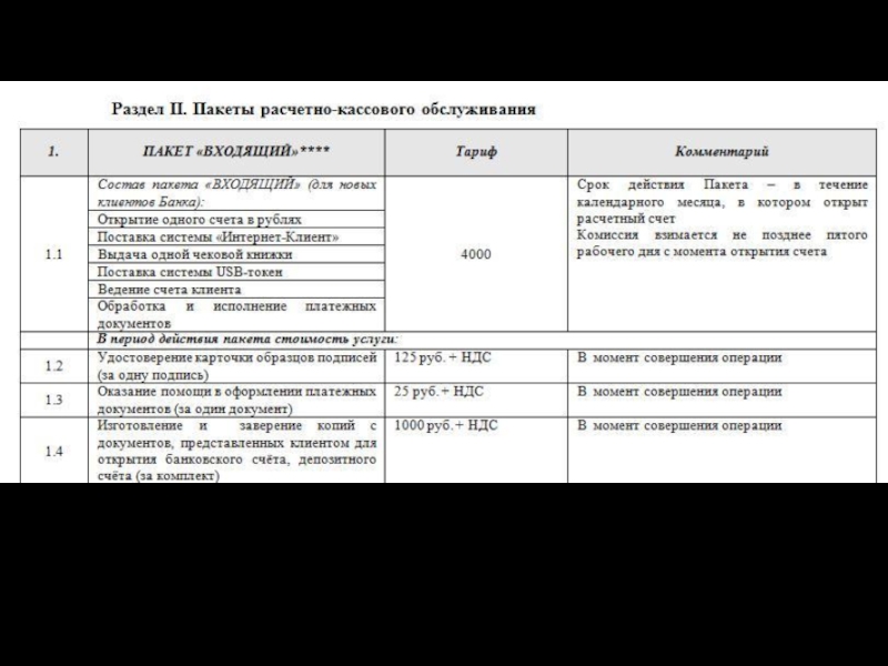 Ведение счета с использование системы «Интернет-банк», исполнение платежных документов в срок до последнего числа месяца подключения к пакету «Входящий» без взимания вознаграждения.