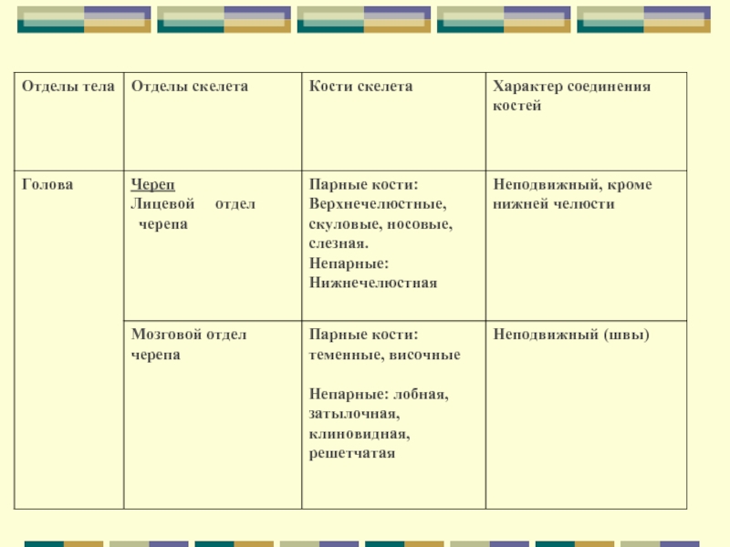 ОТДЕЛАМИ СКЕЛЕТА ЧЕЛОВЕКА, ИХ СТРОЕНИЕМ И ФУНКЦИЯМИ.