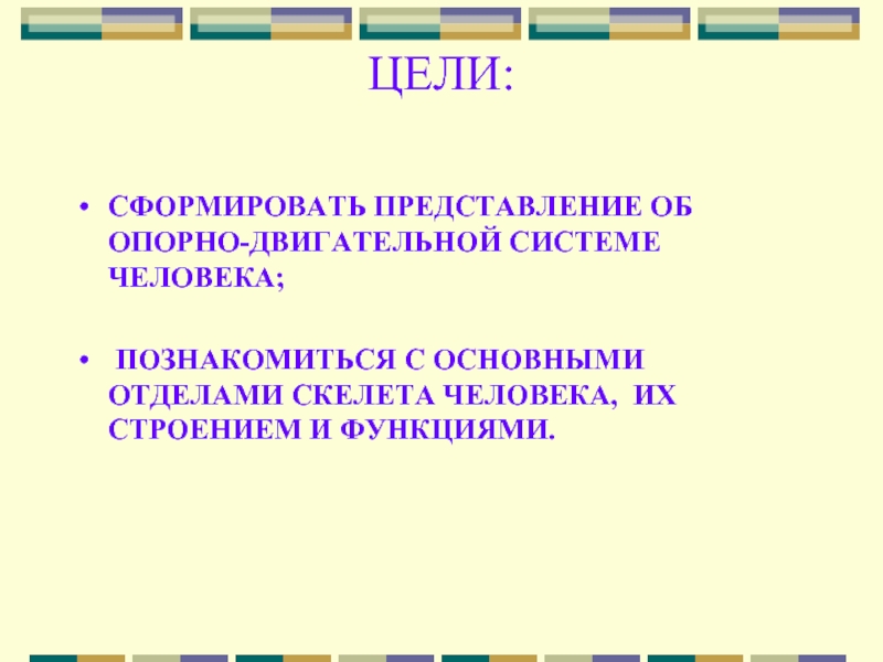 СФОРМИРОВАТЬ ПРЕДСТАВЛЕНИЕ ОБ ОПОРНО-ДВИГАТЕЛЬНОЙ СИСТЕМЕ ЧЕЛОВЕКА;