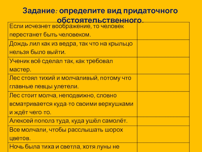 Слайд 11Задание: определите вид придаточного обстоятельственного.