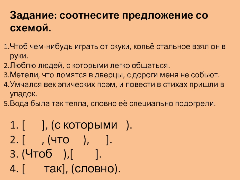 Слайд 15Задание: соотнесите предложение со схемой.