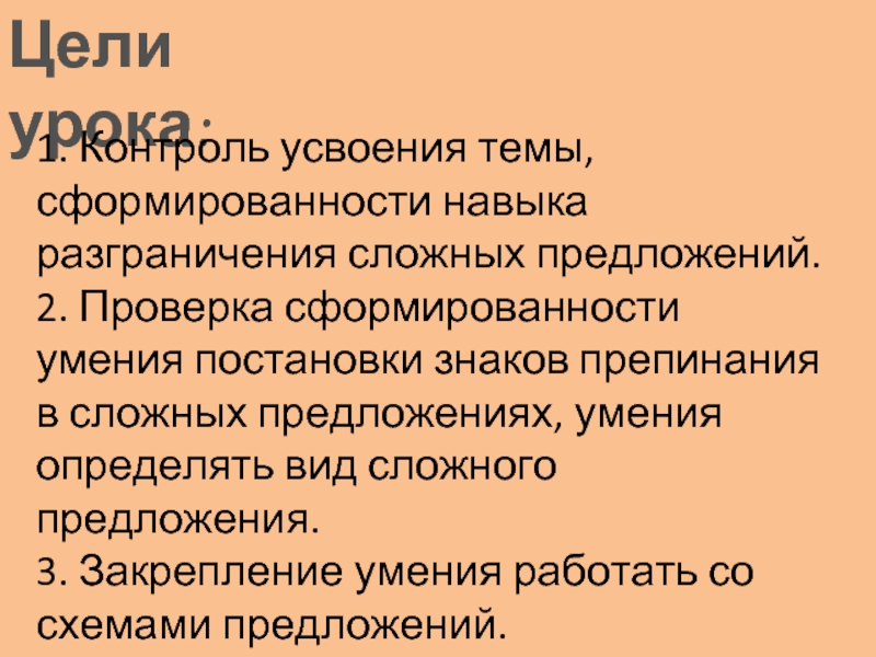 1. Контроль усвоения темы, сформированности навыка разграничения сложных предложений.