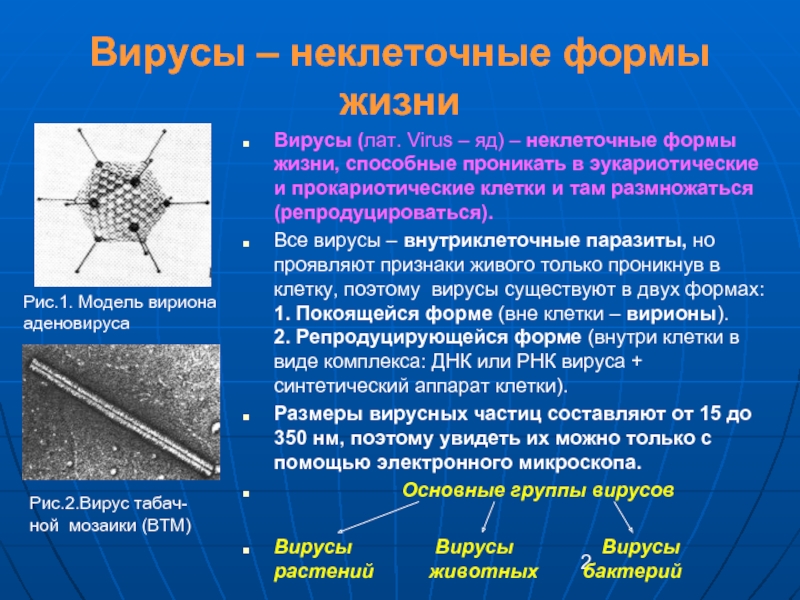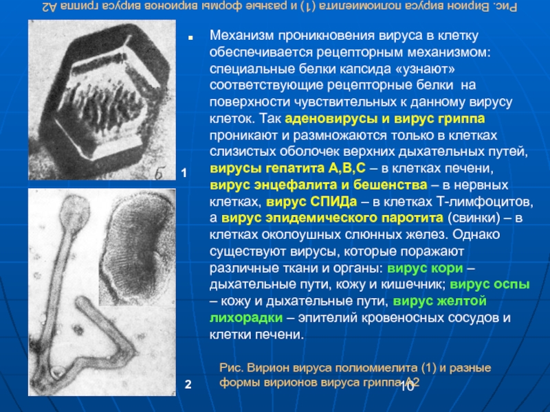 Рис. Вирион вируса полиомиелита (1) и разные формы вирионов вируса гриппа А2