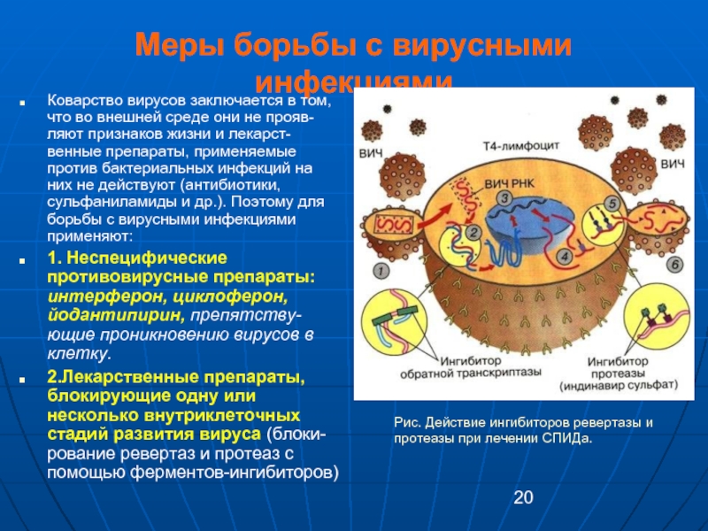 Рис. Действие ингибиторов ревертазы и протеазы при лечении СПИДа.