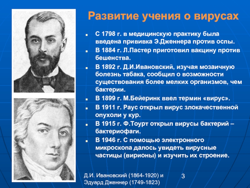Д.И. Ивановский (1864-1920) и Эдуард Дженнер (1749-1823)