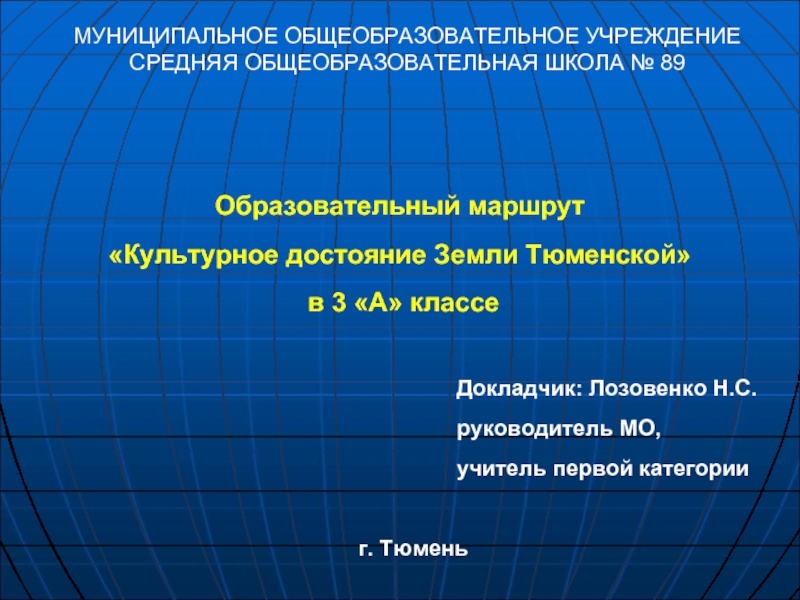 Образовательный маршрут «Культурное достояние Земли Тюменской»