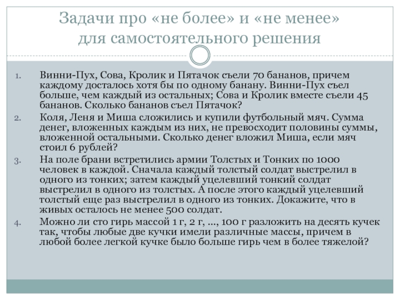 Слайд 17Задачи про «не более» и «не менее»