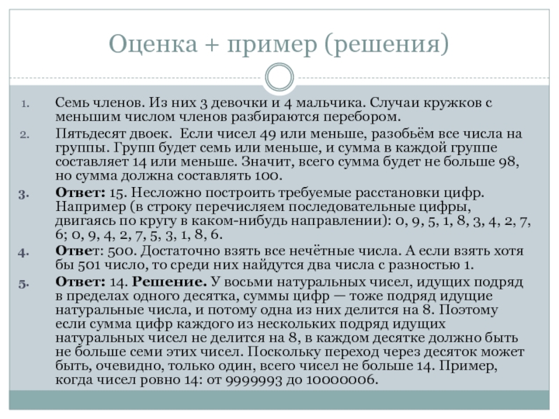 Слайд 21Оценка + пример (решения)