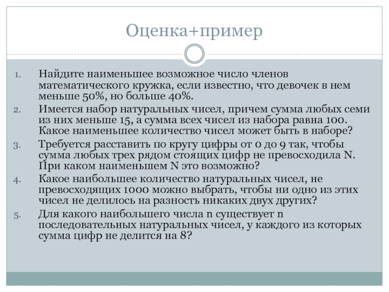 Слайд 5Задача «оценка + пример»