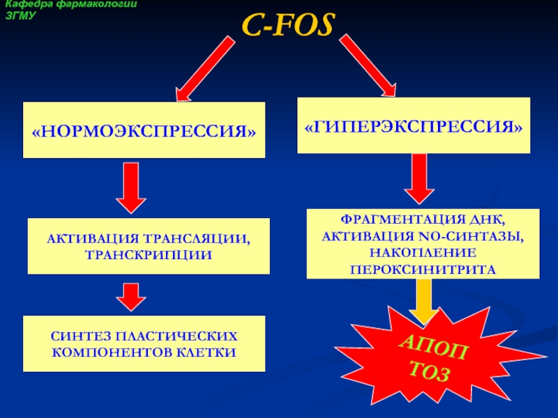 гибели клеток с некроза на более «мягкий» – апоптоз, опосредованно через усиления экспрессии генов раннего реагирования c-fos в острый период ишемии