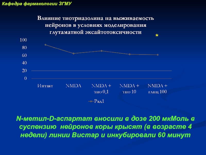 Слайд 33N-метил-D-аспартат вносили в дозе 200 мкМоль в суспензию нейронов коры крысят