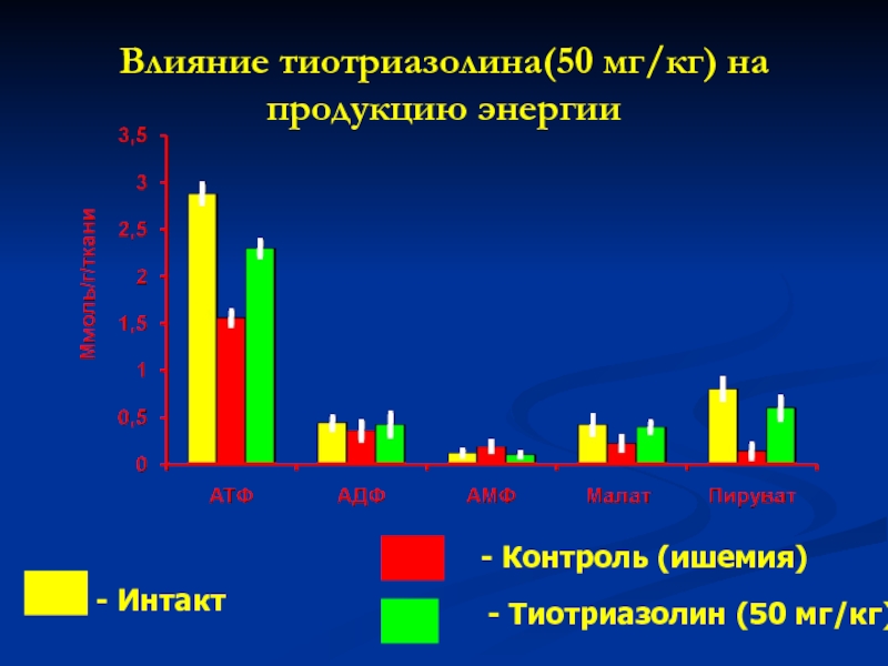 Слайд 21Влияние тиотриазолина(50 мг/кг) на продукцию энергии