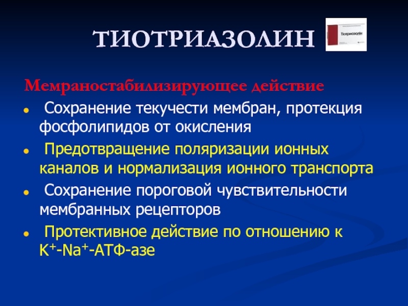 Слайд 3Тиотриазолин-метаболитотропный препарат с антиоксидантным и энерготропным механизмом