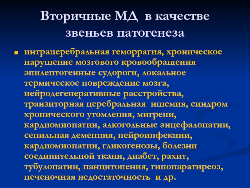 Слайд 16Вторичные МД в качестве звеньев патогенеза