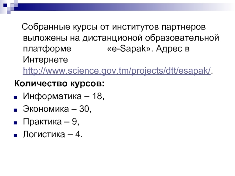 платформе       «e-Sapak». Адрес в Интернете http://www.science.gov.tm/projects/dtt/esapak/.