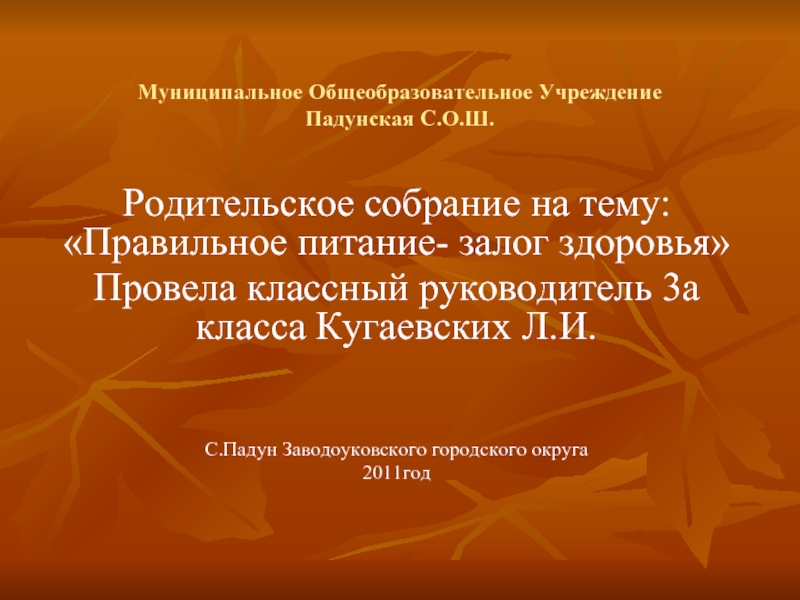 Родительское собрание на тему: «Правильное питание- залог здоровья»