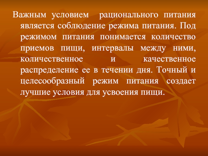 Важным условием рационального питания является соблюдение режима питания. Под режимом питания