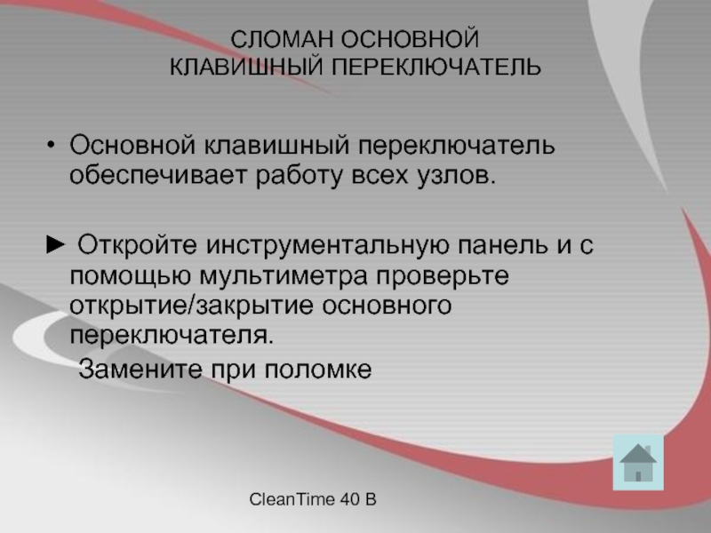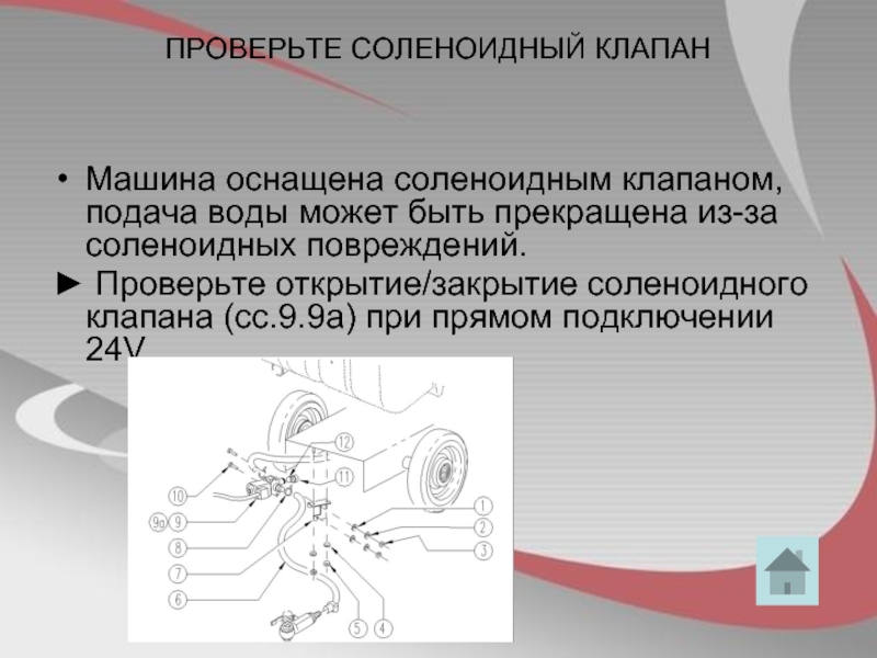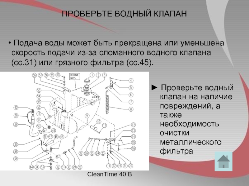Подача воды может быть прекращена или уменьшена скорость подачи из-за сломанного водного клапана (сс.31) или грязного фильтра (сс.45).