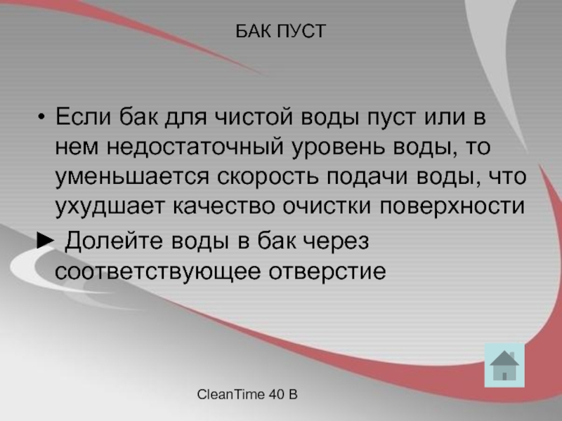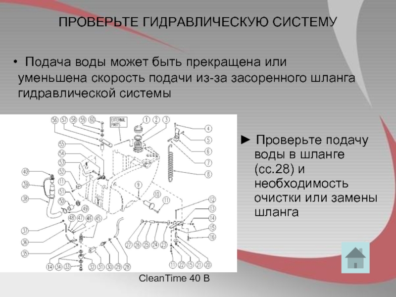 Подача воды может быть прекращена или уменьшена скорость подачи из-за засоренного шланга гидравлической системы