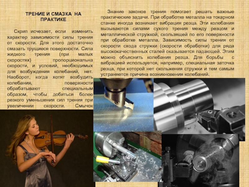Силы трения между смычком и струной – это силы сухого трения (силы сухого трения и трения скольжения). Первая сила возникает между соприкасающимися, но неподвижными друг относительно друга телами, вторая – при скольжении одного тела по поверхности другого.