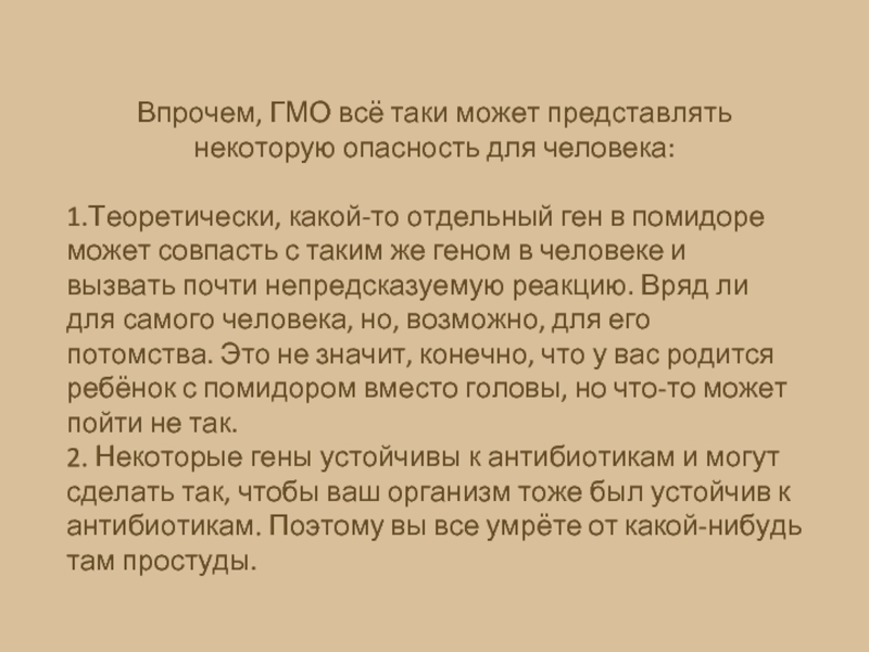 Впрочем, ГМО всё таки может представлять некоторую опасность для человека: