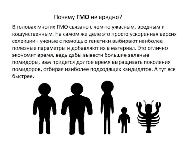 отдельный ген в помидоре может совпасть с таким же геном в человеке и вызвать почти непредсказуемую реакцию. Вряд ли для самого человека, но, возможно, для его потомства. Это не значит, конечно, что у вас родится ребёнок с помидором вместо головы, но что-то может пойти не так.