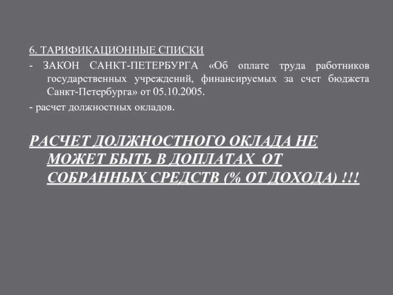 РАСЧЕТ ДОЛЖНОСТНОГО ОКЛАДА НЕ МОЖЕТ БЫТЬ В ДОПЛАТАХ ОТ СОБРАННЫХ СРЕДСТВ (% ОТ ДОХОДА) !!!