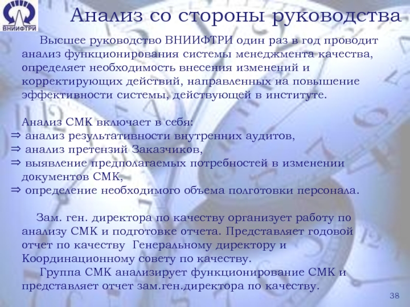 Слайд 38 Анализ со стороны руководства