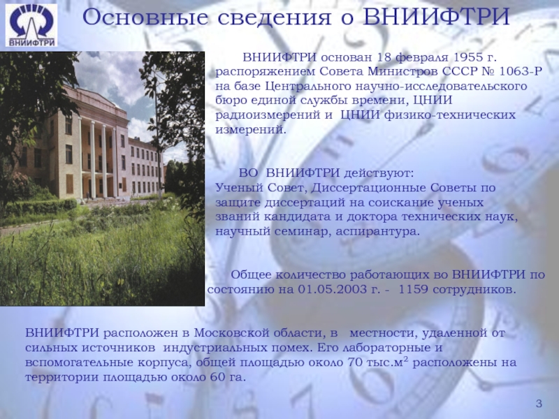 Слайд 3Основные сведения о ВНИИФТРИ