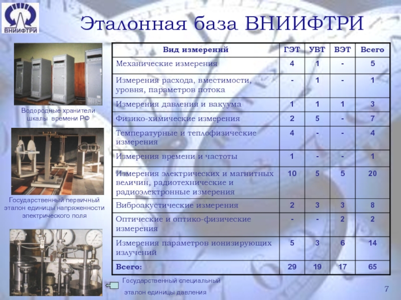 Слайд 7Эталонная база ВНИИФТРИ