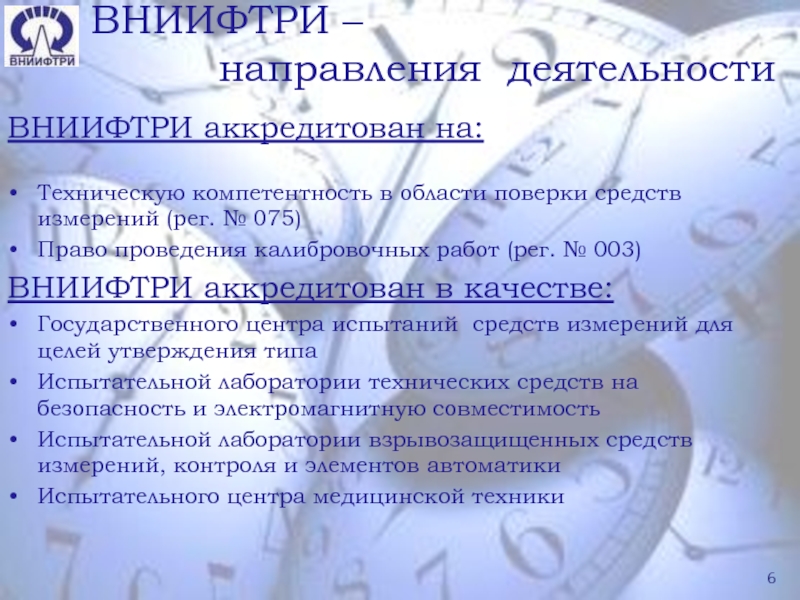 ВНИИФТРИ аккредитован на: