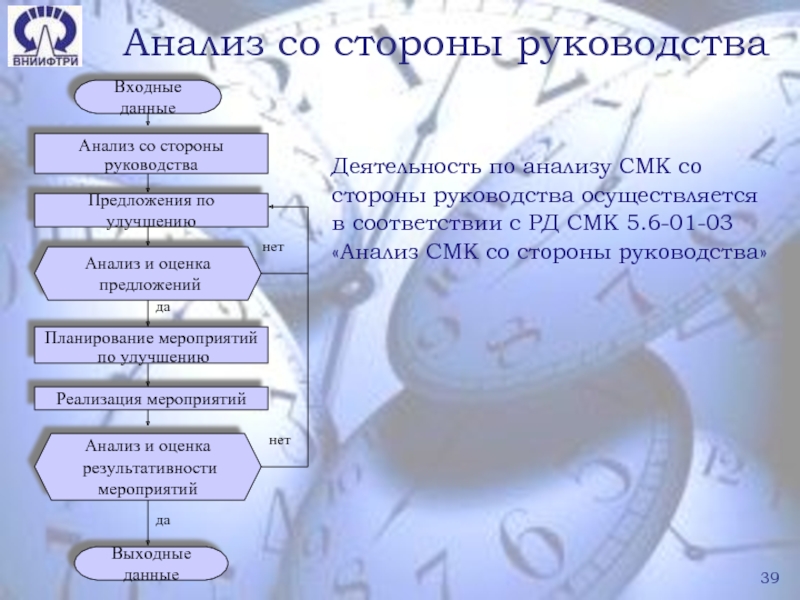 Слайд 39Анализ со стороны руководства