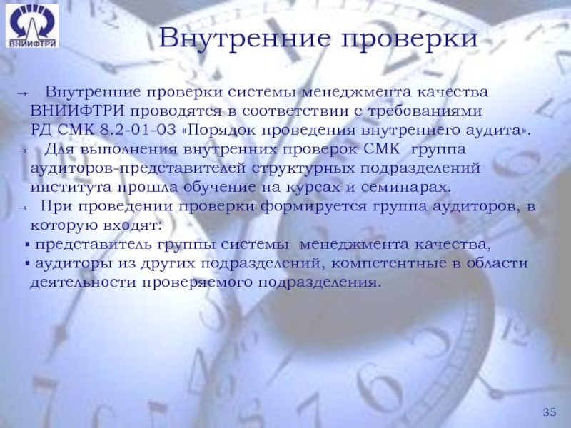 Внутренние проверки системы менеджмента качества ВНИИФТРИ проводятся
