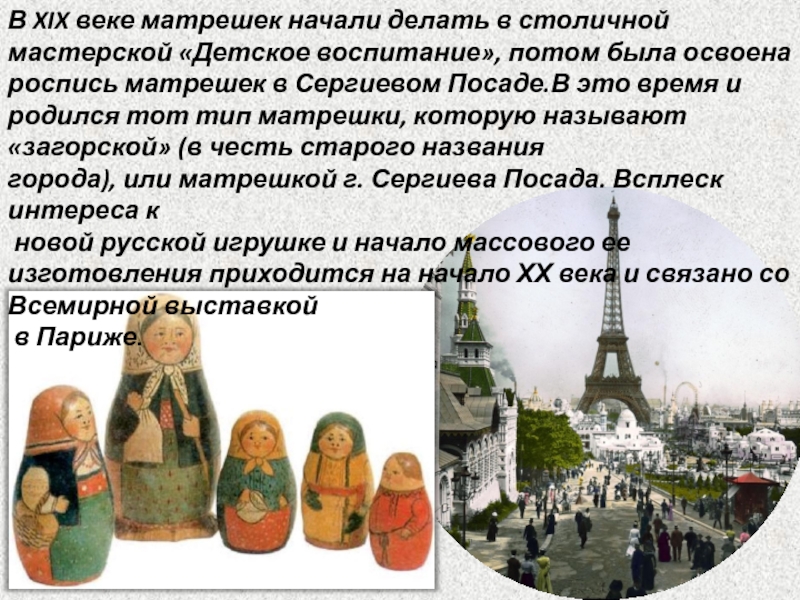новой русской игрушке и начало массового ее изготовления приходится на начало ХХ века и связано со Всемирной выставкой