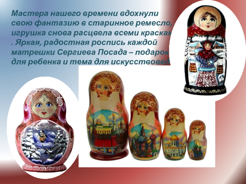 расцвела всеми красками . Яркая, радостная роспись каждой матрешки Сергиева Посада – подарок для ребенка и тема для искусствоведа.