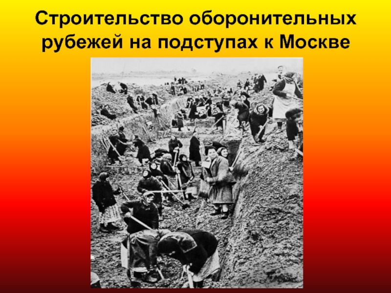 Слайд 6Строительство оборонительных рубежей на подступах к Москве