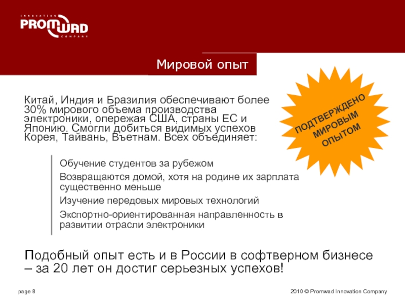 Подобный опыт есть и в России в софтверном бизнесе – за 20 лет он достиг серьезных успехов!